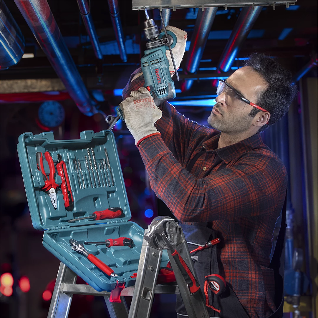 | متعلقات | پیچگوشتی چهارسو،پیچگوشتی دوسو،انبر دست،کاتر،فازمتر،متر 3 متری،چکش دو شاخ،آچار فرانسه،4 عدد مته چوب،4عدد مته آهن،3 عدد مته بتن،میله عمق سنج، دسته جانبی،آچار سه نظام |