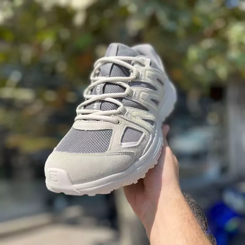 کتونی راحتی سالامون با زیره ایویا و لاستیک با رویه پارچه و چرم یه کار بسیار بادوام مناسب برای روزمره پیاده روی و ورزش
