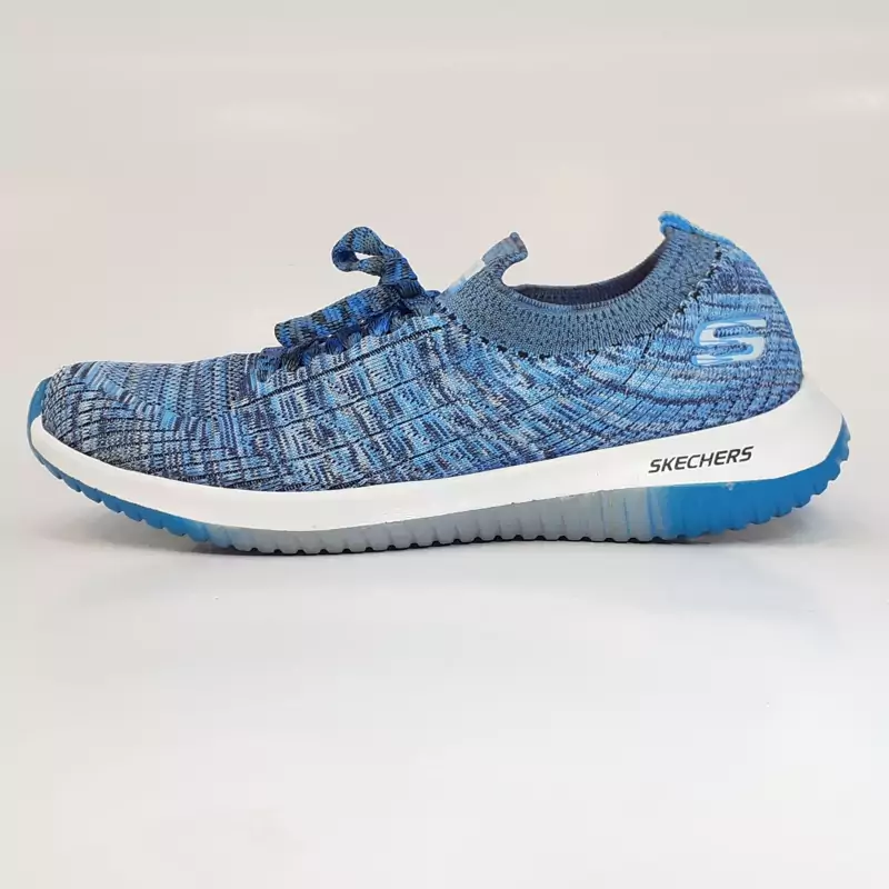 کفش راحتی زنانه اسکچرز دهنه کشی با بند نمایشی آبی برفکی