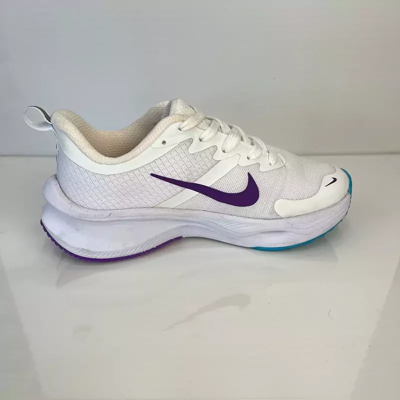 کفش راحتی زنانه نایکی طرح لبخند سفید بنفش با زیره ایویا عالی مخصوص ورزش پیاده روی و باشگاه